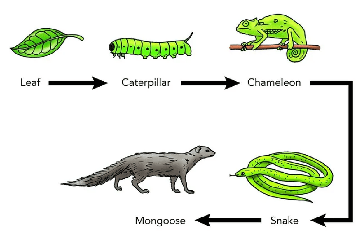 In this food chain, what does the snake eat?
