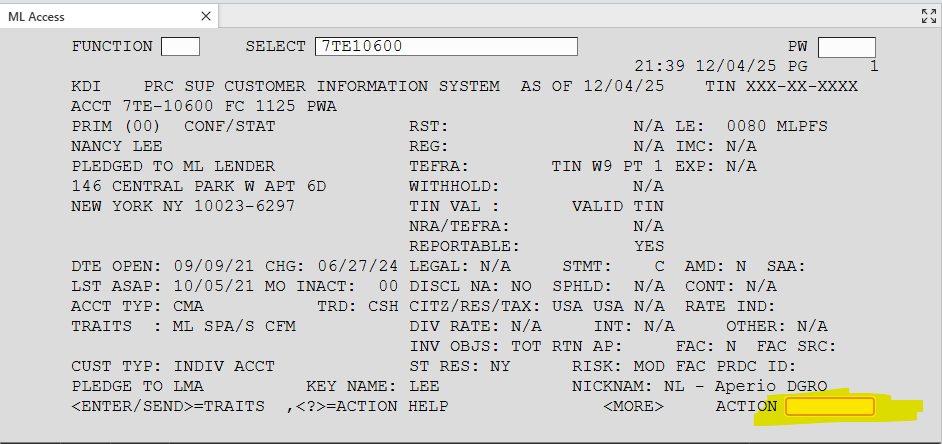 Branch staff use this primary client‑data system to set and verify operational flags—such as duplicate statement addresses—and to view certain manager contact details tied to SPA/MAS accounts.