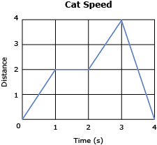 The graph represents the movement of a cat over the period of 4 seconds. What does the graph tell us about the cat's movement from 1-2 seconds?