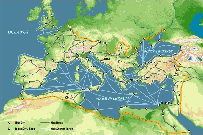 Identify this places on the MAP: Gallia, Italia, Hispania and Britannia