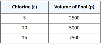 The amount of chlorine needed to treat a swimming pool is directly proportional to the volume of the pool.
