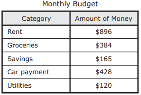 Alberto’s monthly income is $3,200. Part of Alberto’s monthly budget is shown in the table.