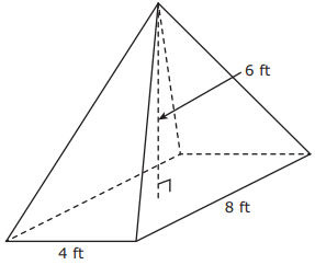 The dimensions of a rectangular pyramid are shown.