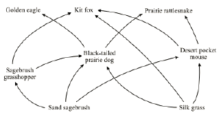 Secondary/Tertiary consumers - consume other consumers. Ex: golden eagle, kit fox, prairie rattlesnake