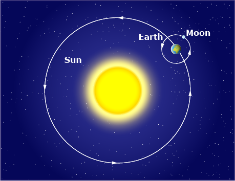 The picture below shows the Earth's orbit around the Sun and the Moon's orbit around Earth.