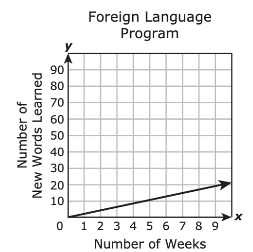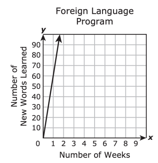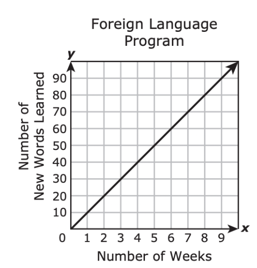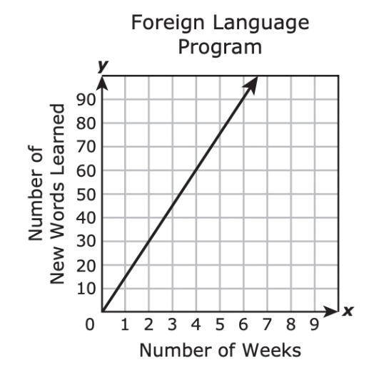 A student in a foreign language program learns 15 new words each week. Which graph best represents the relationship between x, the number of weeks the student has been in the program and y, the total number of new words the student has learned?