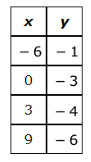 A relationship between x and y is shown in the graph.