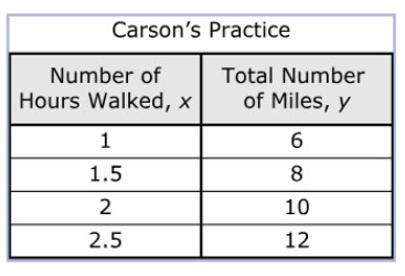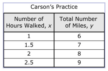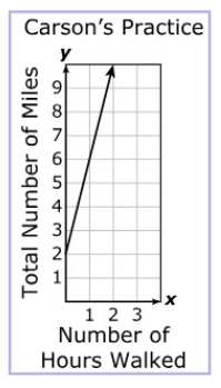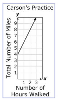 Which representation show the relationship between the total number of miles he covers in a day, y, and the number of hours he walks, x?