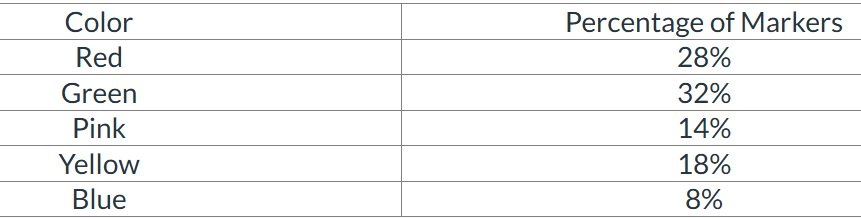 The bucket contains 14 red markers. Which statements are true? Select TWO correct answers.