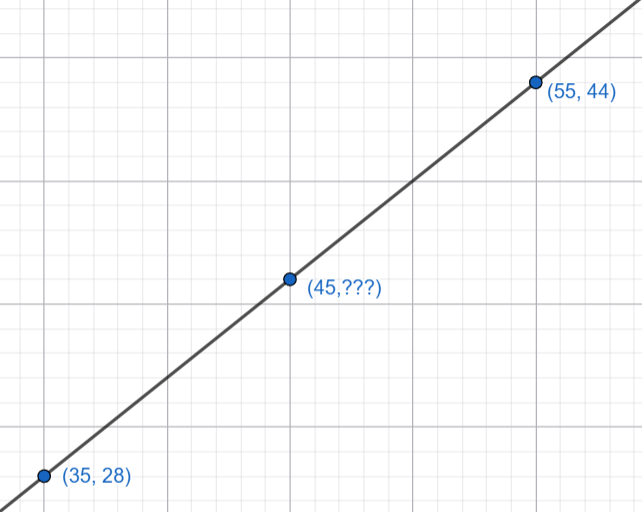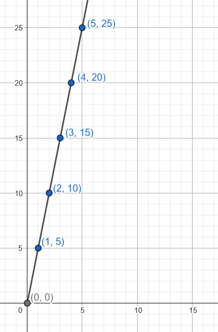 The graph represents a proportional relationship. What is the y value of the middle point on the line?