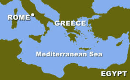 The Mediterranean Sea was located in the center of the Roman empire. That is why, in English, "Mediterranean" translates to this phrase
