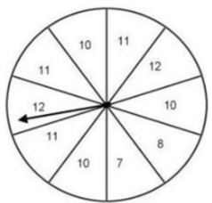 What is the probability of the arrow landing on a section labeled 12 on the first spin?