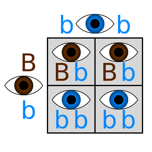 In the punnet square shown, what is the probability that the blue eye gene will show in the offspring?