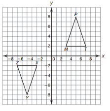 Two triangles are shown on the coordinate plane below. Describe a transformation or sequence of transformations that shows triangle MPT is similar to XYZ.
