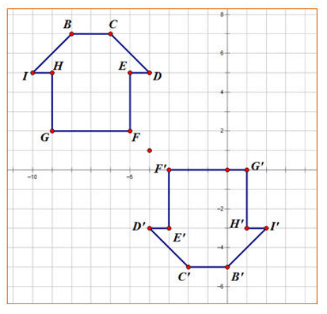 The transformation of a polygon is shown below. Which transformation best describes the relationship between the polygons (Rotation, Reflection, Translation)?