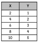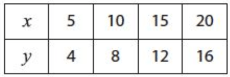 Write an equation from this table. (Hint: Use y=kx to write the equation).