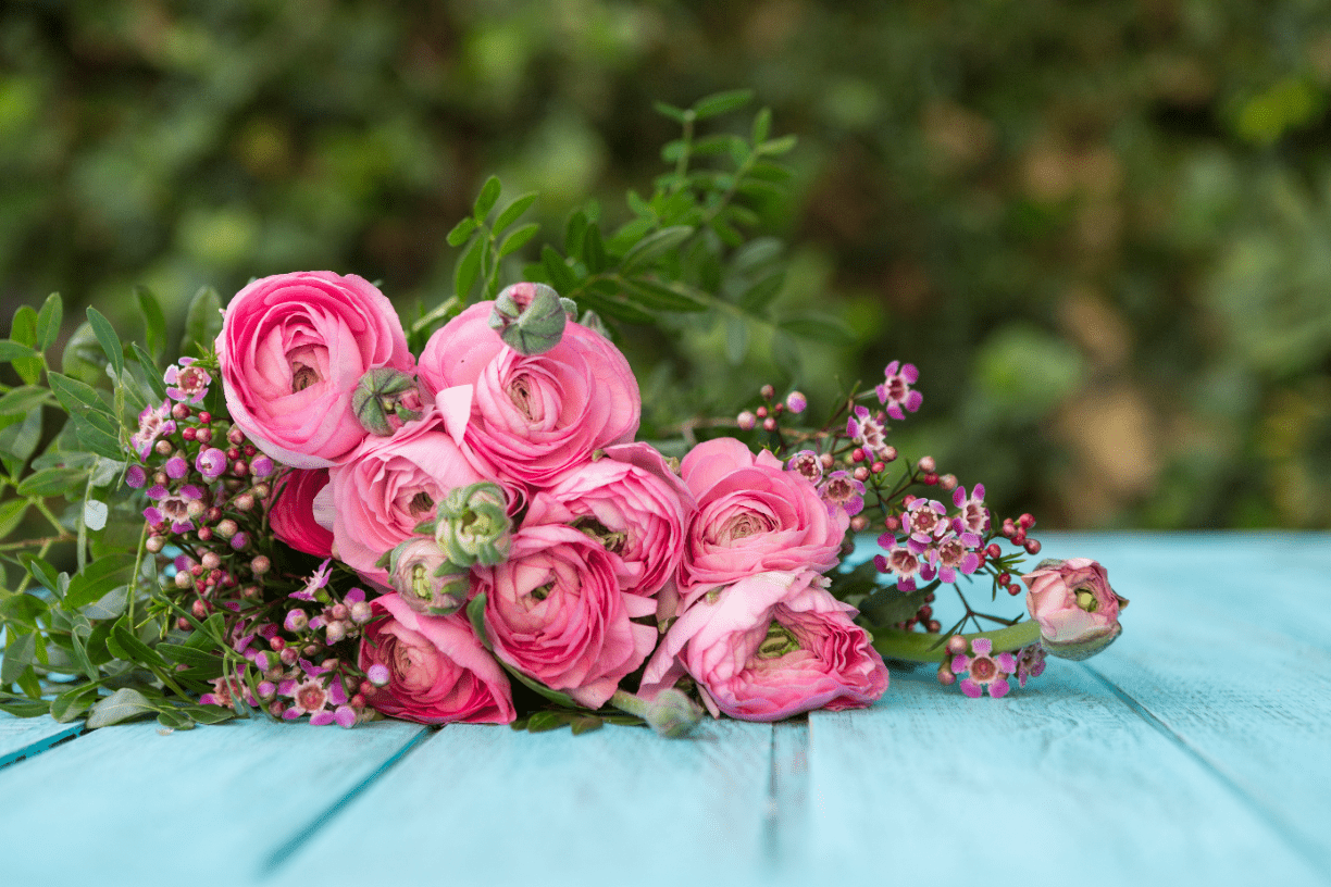 There are _______ flowers on the table.