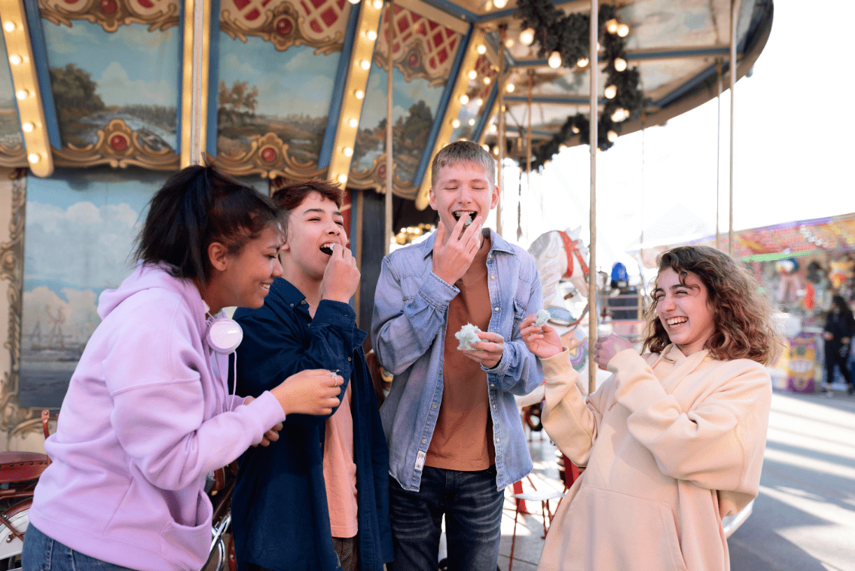 John and his friends AREN'T at the funfair.