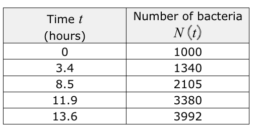 Find the average rate of change for the number of bacteria from 3.4 hours to 8.5 hours.