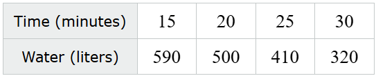 #1) DECREASING by 18 liters per minute (-90/5=-18)