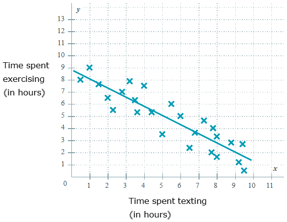 #1) as the time spent texting increases, the time spent exercising tends to ___________