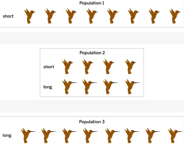 If their environment changes to have only long flowers, which of the following hummingbird populations will most likely survive?