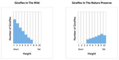 Scientists measured the height of giraffes in two populations—one in the wild and one in a nature preserve. Which statement best describes the difference between the two populations?