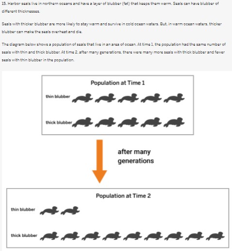 The water became colder. Seals with thick blubber are more likely to survive, so both kinds of seals passed on the gene for thick blubber to their offspring.