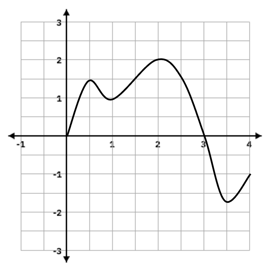 Consider the graph below, which represents f'(x). At which x-value(s) does f(x) have an absolute maximum over the interval [0,4]?