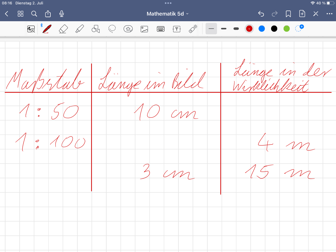 Ergänzt die fehlenden Einträge in dieser Maßstabstabelle: