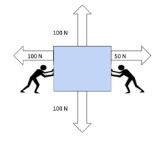 If a box is being pushed with 5N on the left and someone begins to push with 5N on the right side of the box, what will happen to the motion of the box?