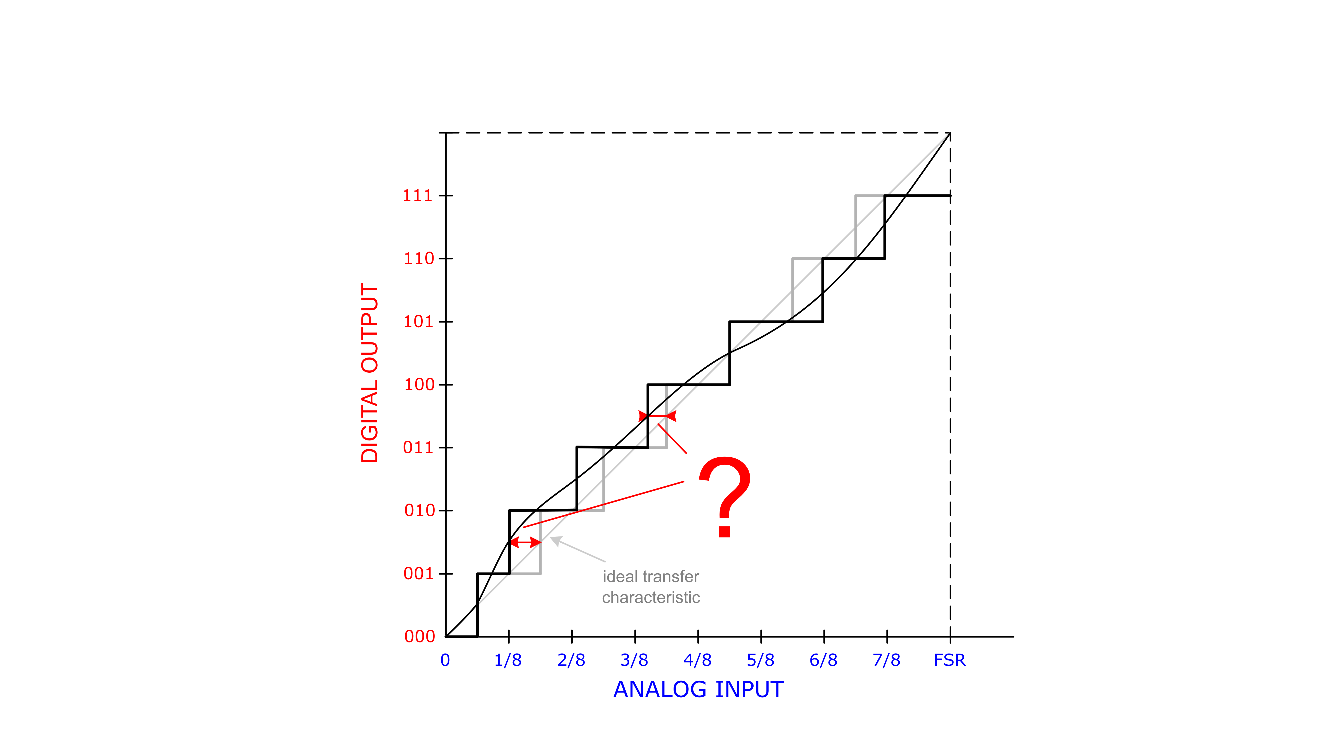 Wenn die differentielle Nichtlinearität größer als 1 LSB wird.