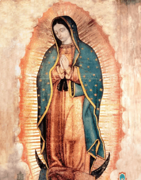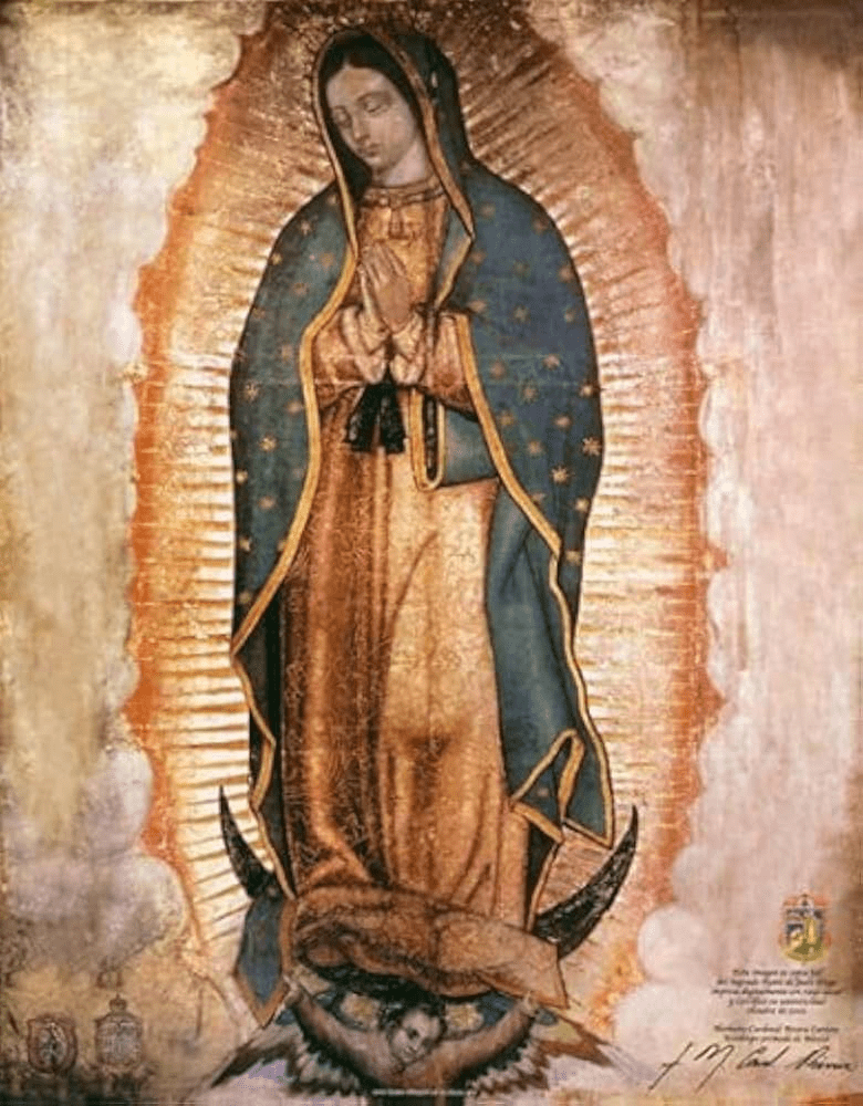 Que esta debajo del imagen de la Virgen de Guadalupe?