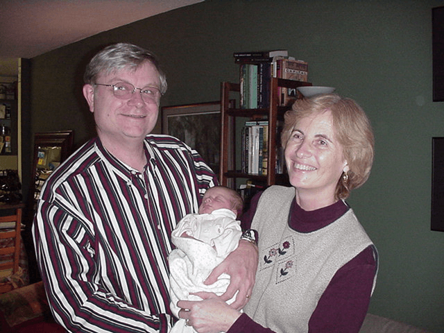 This is a picture of Alan and Lauri meeting first grandchild SIMONE for their first time in NYC at Scott and Jen's on 79th Street and Amsterdam Avenue.