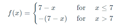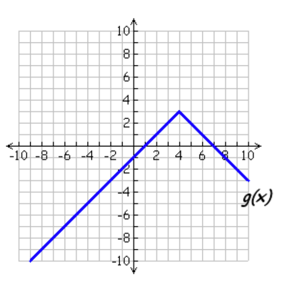 g(x) = {1(x-4)+3, x<=4 ; -1(x-4)+3, x>4}