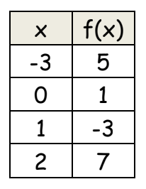 f(x): (-5,3), (-2,8), (4,5), (7,10)