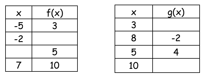 g(x): (3,-5), (8,-2), (5,4), (10,7)