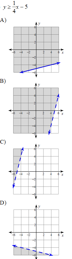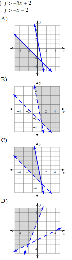 Choose the following answer to the systems of inequalities: