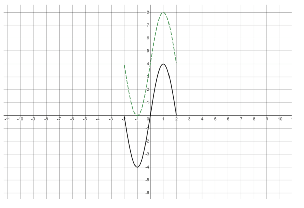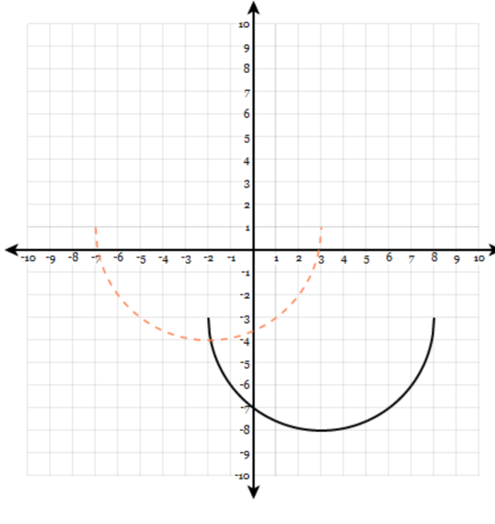 What is the parent function of the following graph & what is the function of the new graph transformed across the coordinate plane?