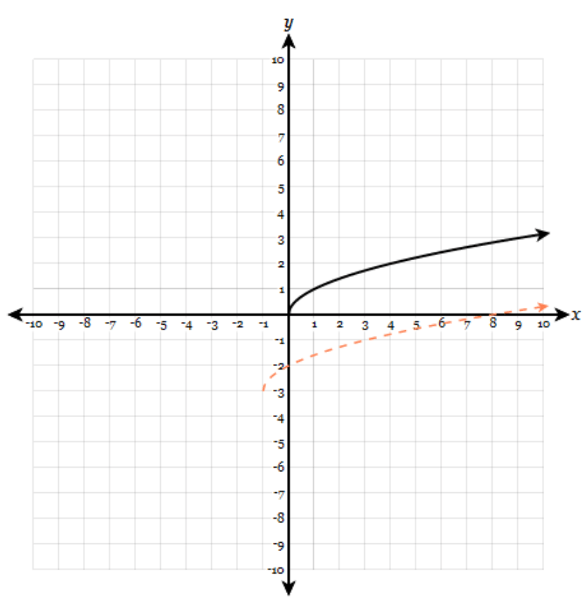 Describe the new transformation from the parent function (black) to the dotted transformation.