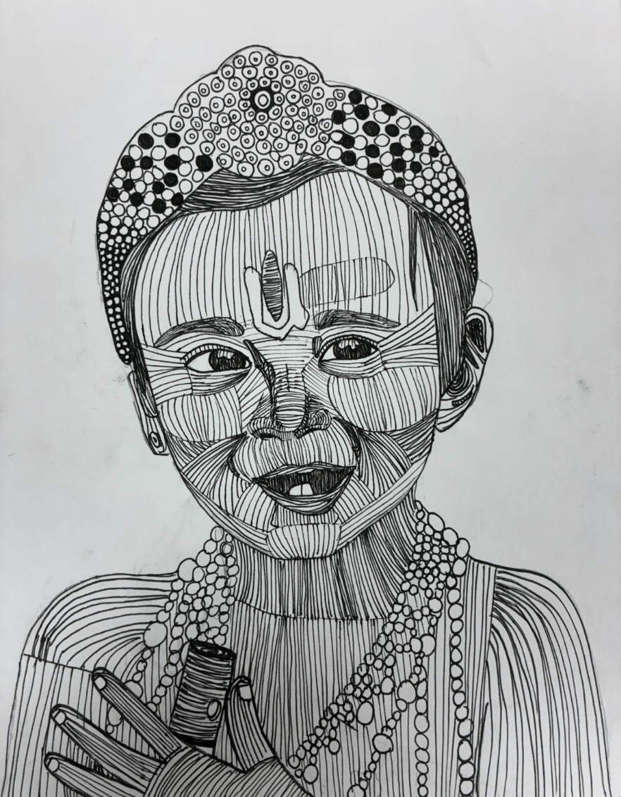 Identify Aayusha's cousin drawn by Aayusha in her Art class at school?