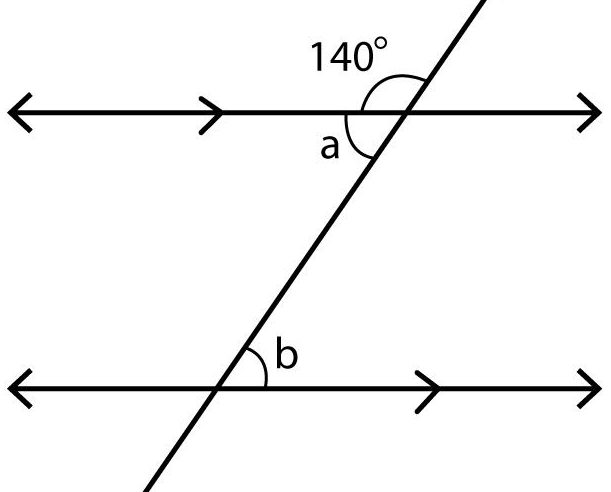 What is 40 degrees? Because angle a is supplementary to 140 degrees, and angle a and b are Alternate Interior Angles, which are congruent.