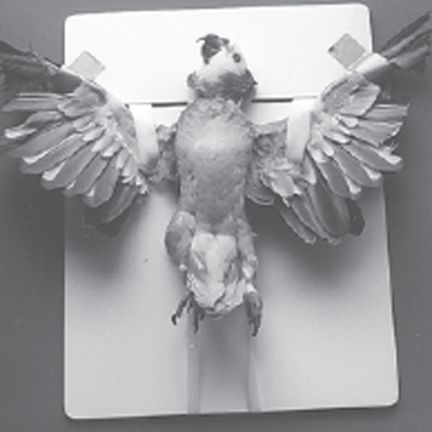 Holding the feet, wings and a gentle grasp around the neck is referred to as: