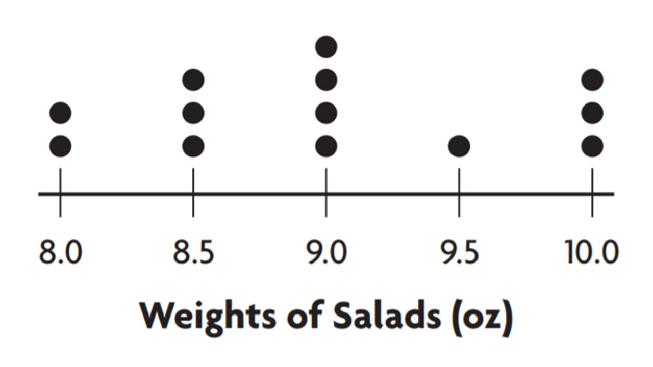 You are making a dot plot to show the data. Which numbers will you put on the number line for the dot plot?
