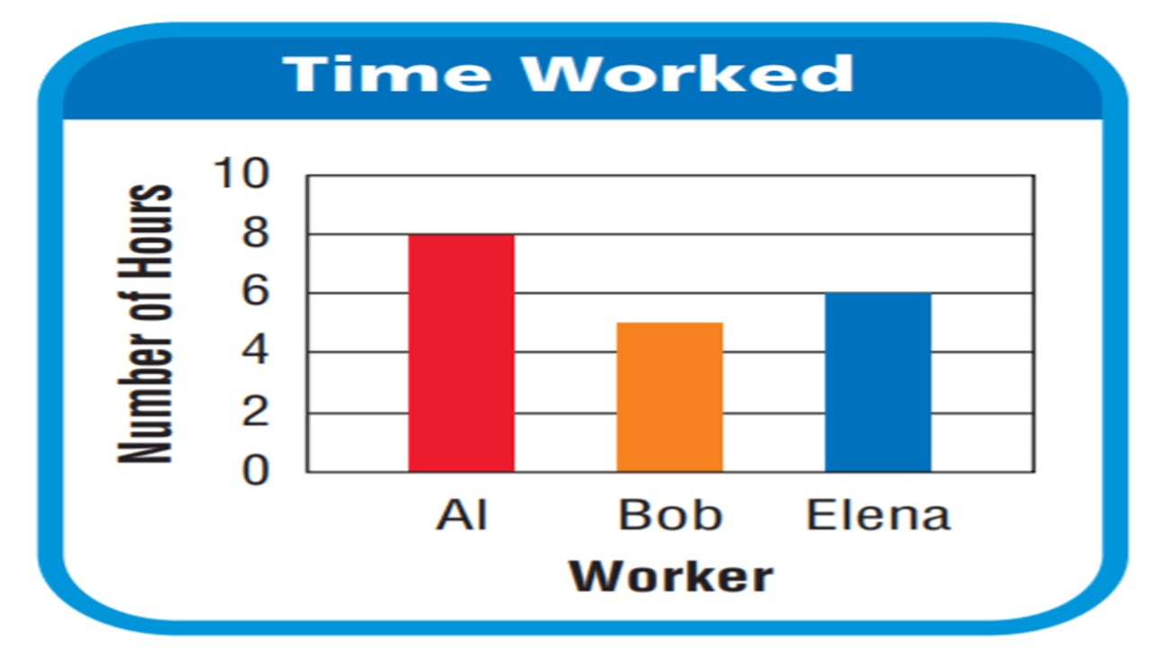 The bar graph shows the number of hours each person worked at the movie theater on Friday. Al earns $8 an hour, Bob earns $10 an hour, and Elena earns $11 an hour. How much will the theater owner pay all three workers on Friday?
