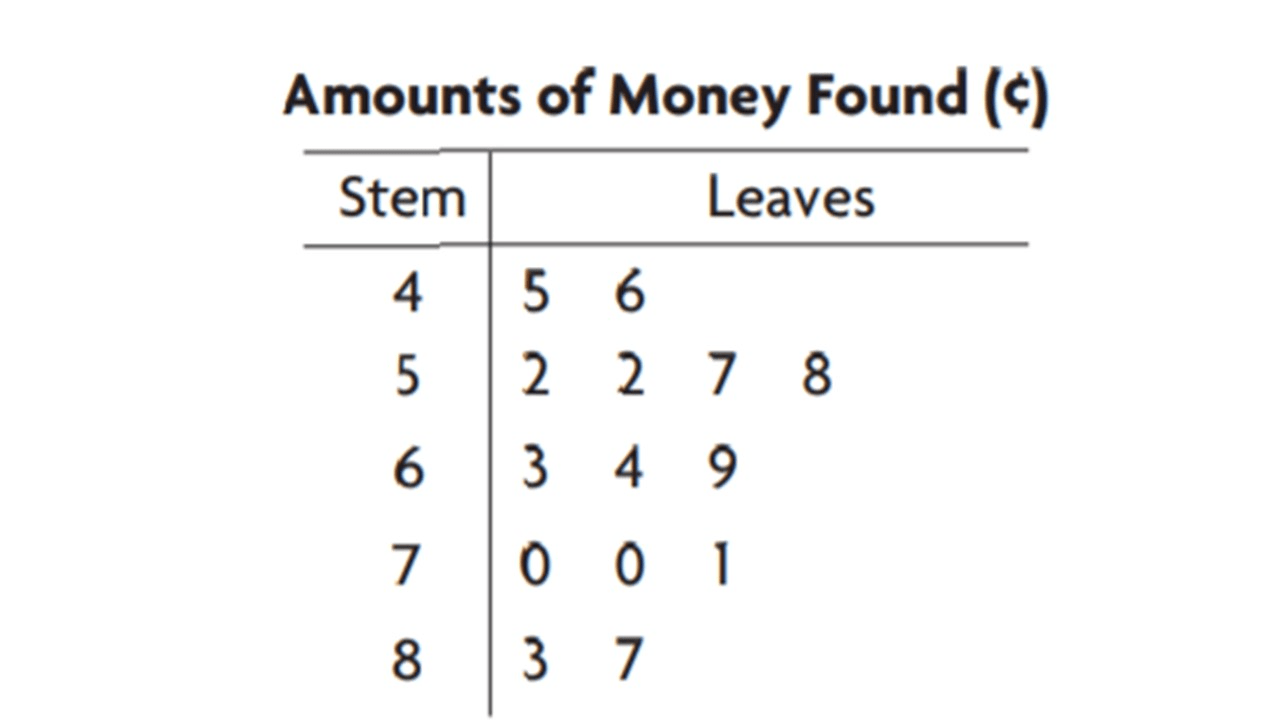 Tom asked people in a survey how much money they could find under their sofa cushions. The stem-and-leaf plot shows the amounts of money. What is the least amount of money a person said they could find?
