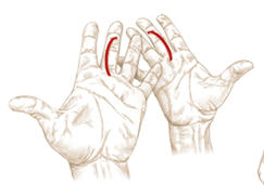 What does abduction of the thumb look like? What Plane of Motion does it occur in?