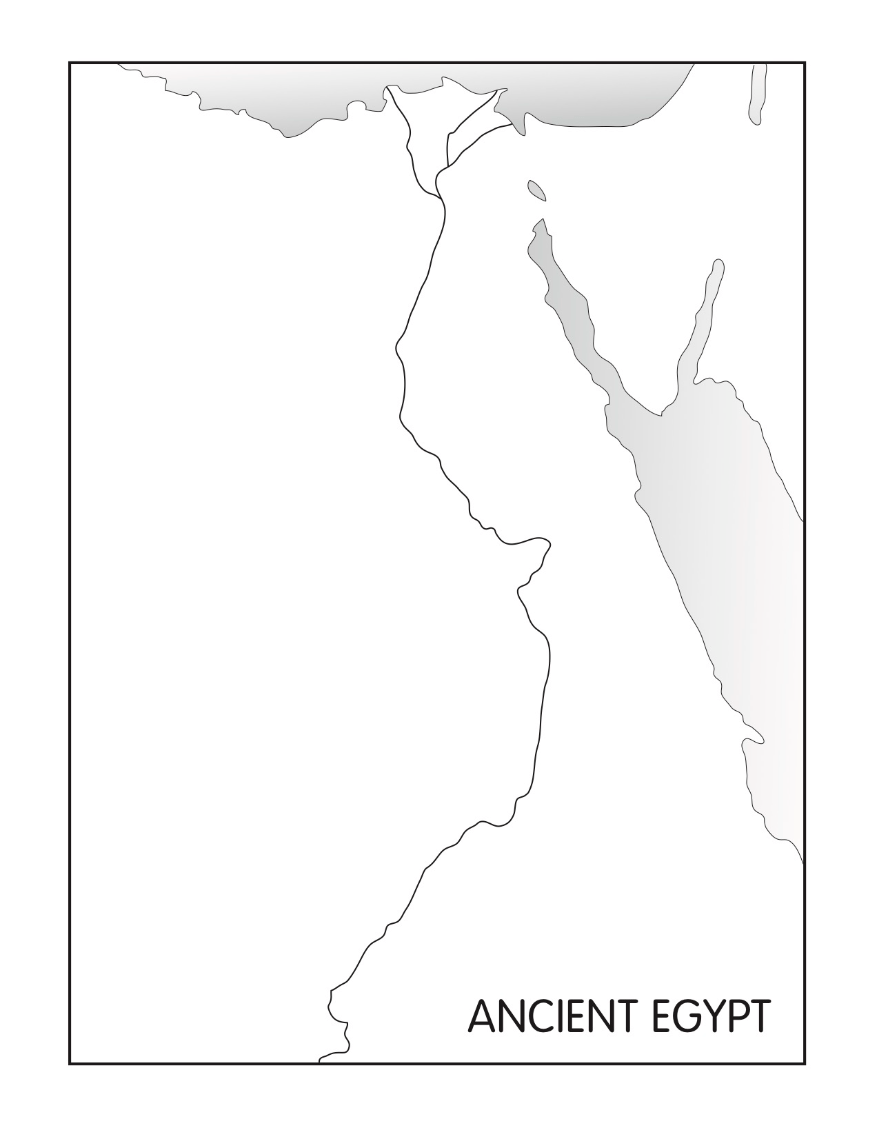 Mediterranean Sea, Red Sea, Nile River, Giza, Memphis, Thebes, Valley of the Kings, Sinai Peninsula, Upper Egypt, and Lower Egypt