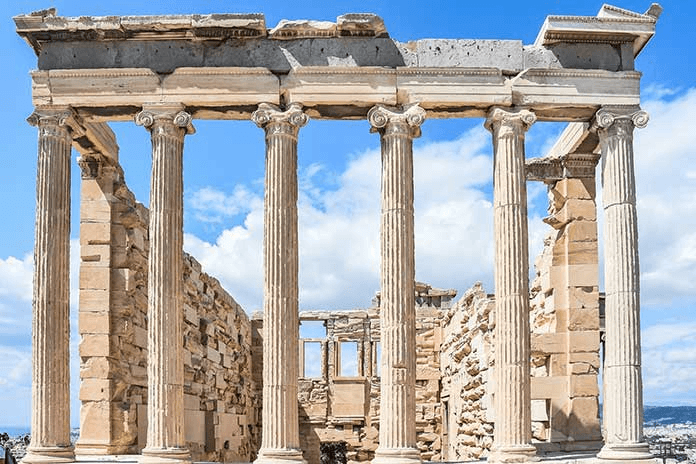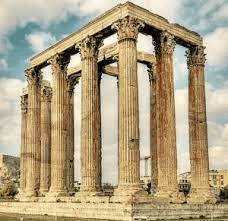 What type of column is identified in this Ancient Greek temple (Ionic, Doric, Corinthian)?