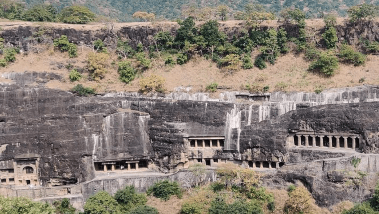 Identify the place, pictured below, that contains Gupta golden age statuary and paintings.